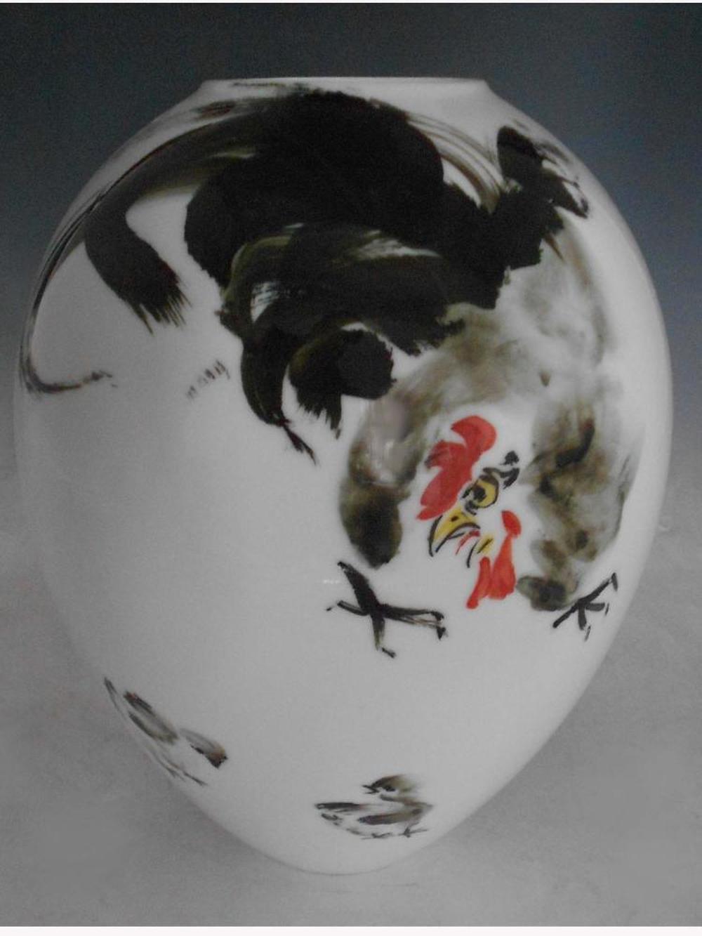 训教作品公鸡和小鸡的题材,作品用寓言的形式刻画出几只小鸡做错事后在接受公鸡的训教。表达了父亲对子女的一种责任,也体现了晚辈悔改的神情。