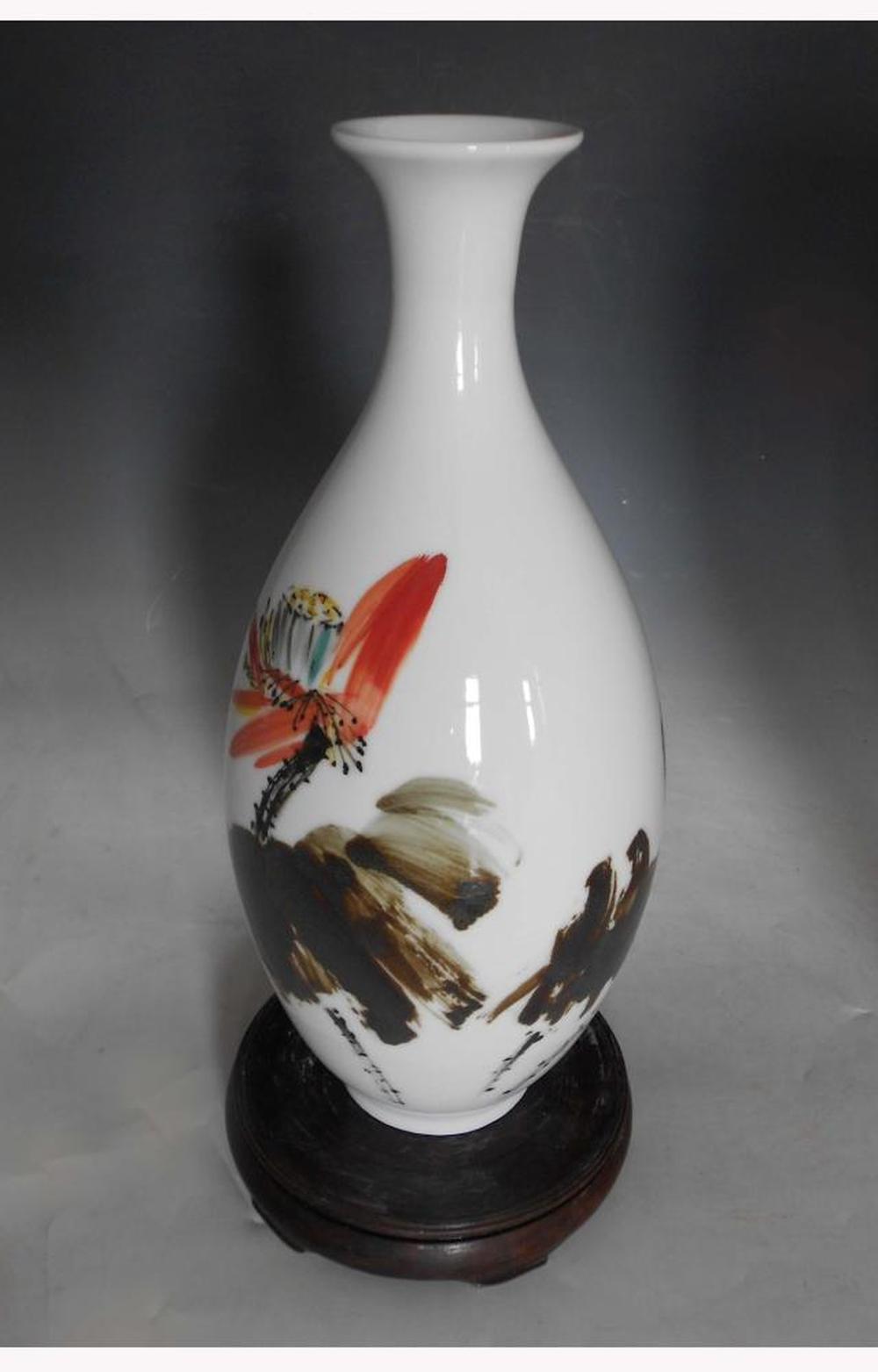 《一枝独秀》. 花瓶为陶瓷艺术大师陈新寿的秀雅之作,画面上一支荷花从窑变釉的荷叶丛中跃出,体现了一枝独秀的精神风貌和出淤泥而不染的气质。