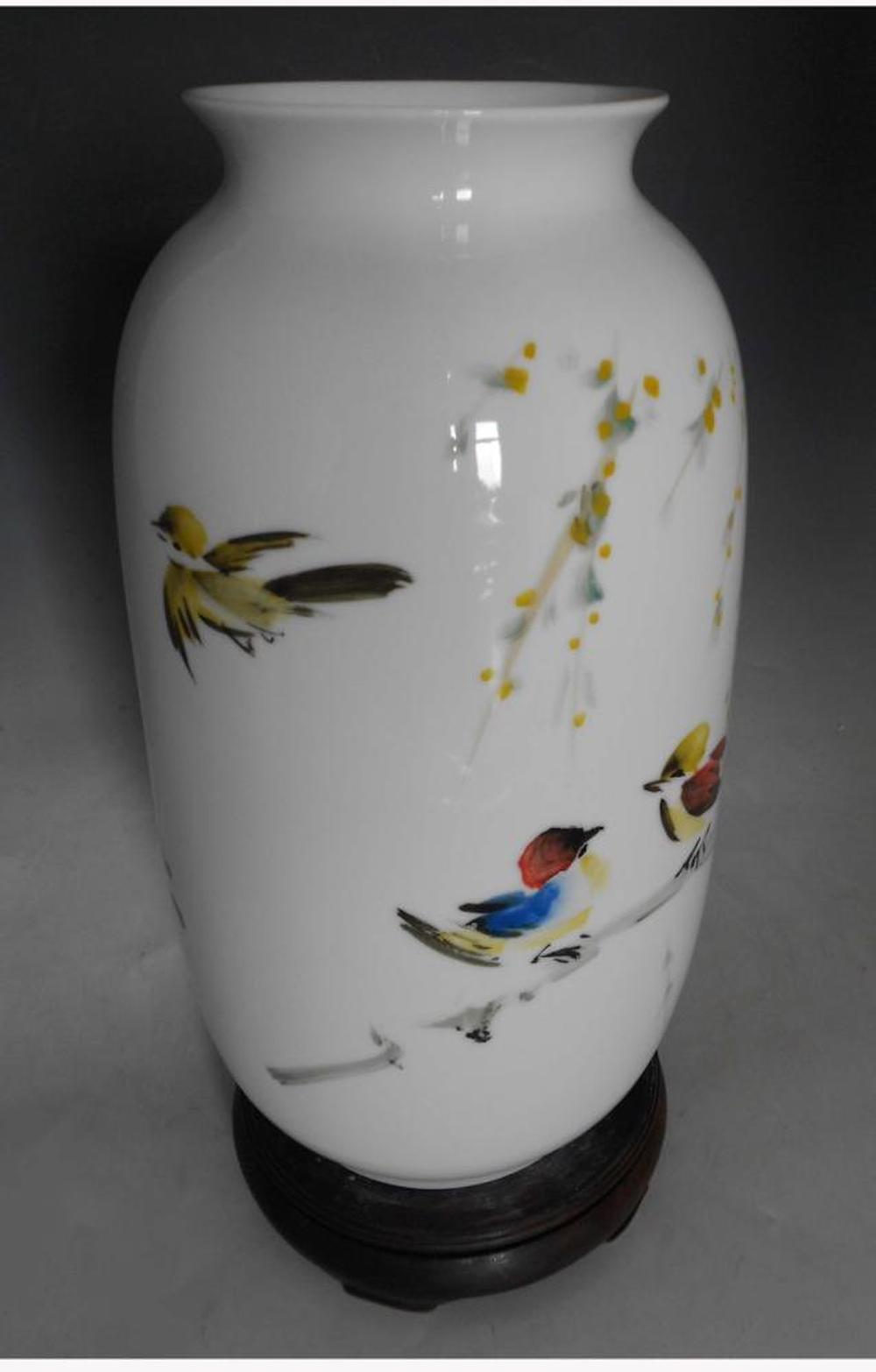 《亦去觅爱》花瓶是陈新寿大师的又一充满趣味的作品,老师用写意花鸟技法描述了枝头鸟儿成双对,另一只鸟儿亦去觅爱的情景。