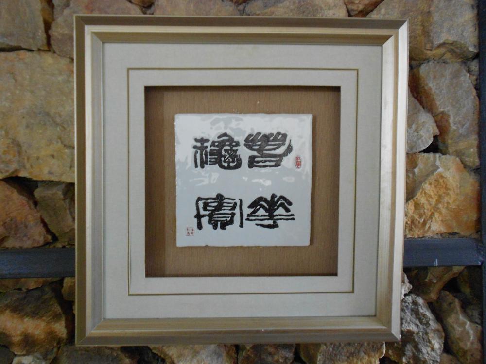 《春华秋实》是陈新寿大师以瓷板代替宣纸而写的书法作品,用笔娴熟,精妙,转折干净利落,意蕴非凡。