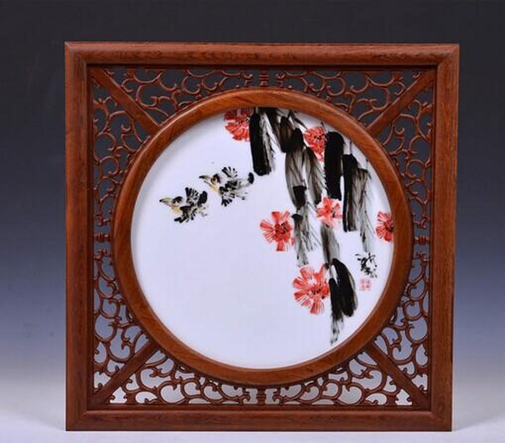 两只飞鸟在苍劲的枝叶外流连,朵朵鲜花饱满丰润,散发出蓬勃春意,画面生动盎然,生机无限。此作品为陈新寿大师的诚意之作,做工细腻,寓意深远,实为佳作。
