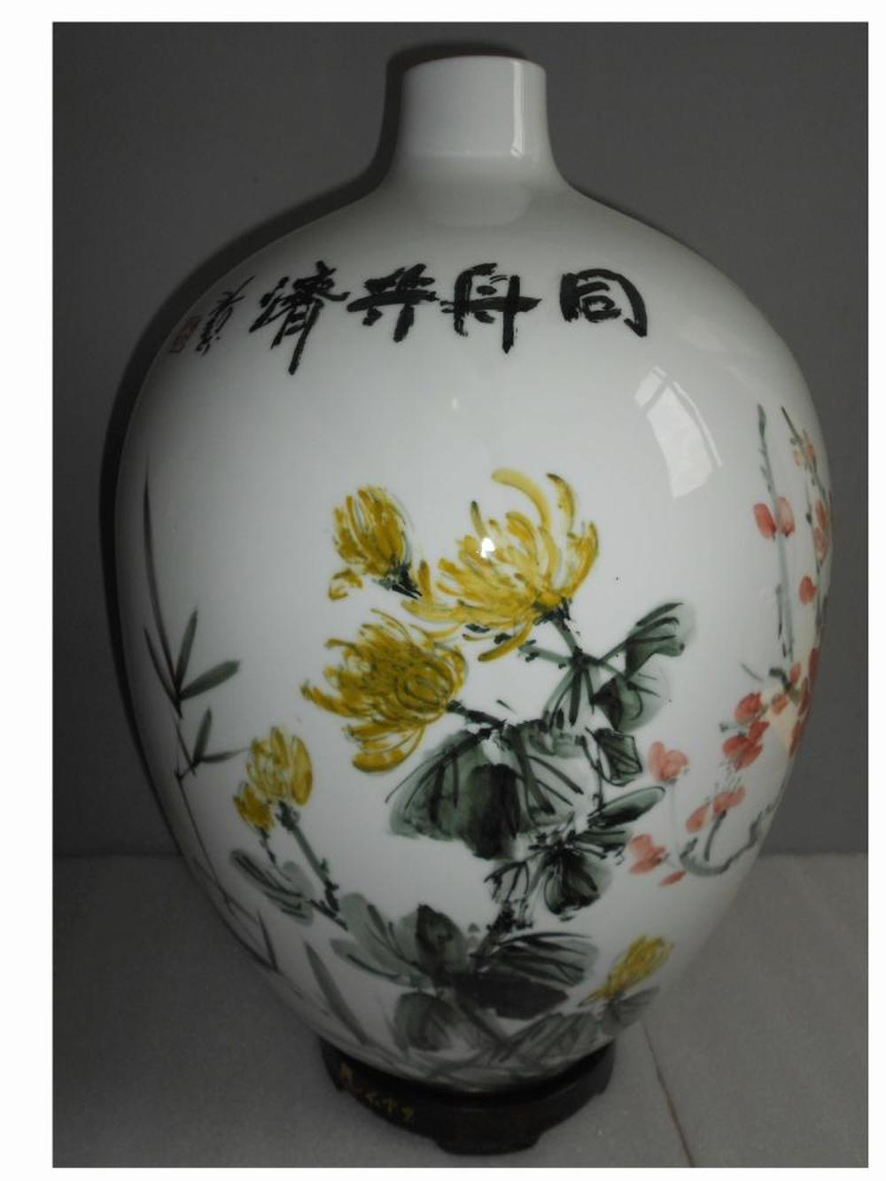 梅花自古以来就以高洁、坚强、谦虚的品格示人,给人以立志奋发的激励;竹因遇风不折而被人视为坚强不屈的象征,兰以幽香而闻名,菊以清雅而著称。此款《同舟共济》将瓷瓶比作为一艘船舶,将梅兰竹菊四君子,工整细致地描绘在瓷瓶上,设色别致,寓意深刻,置于家中可以提升品位,而且具有很高的欣赏价值。